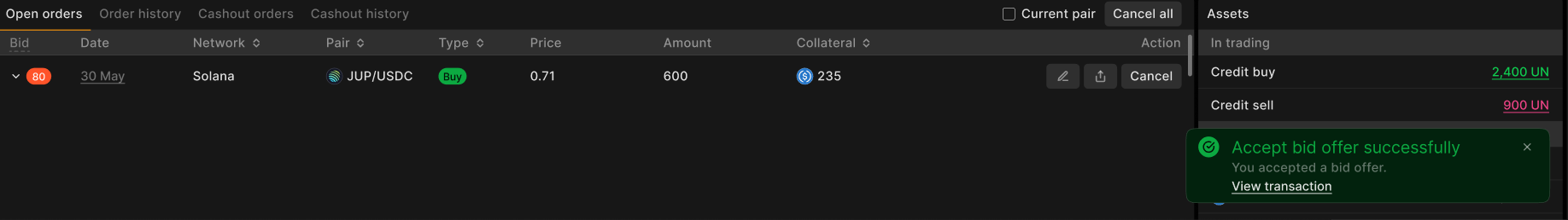 Langkah 3: Konfirmasi setoran jaminan ke dalam kontrak