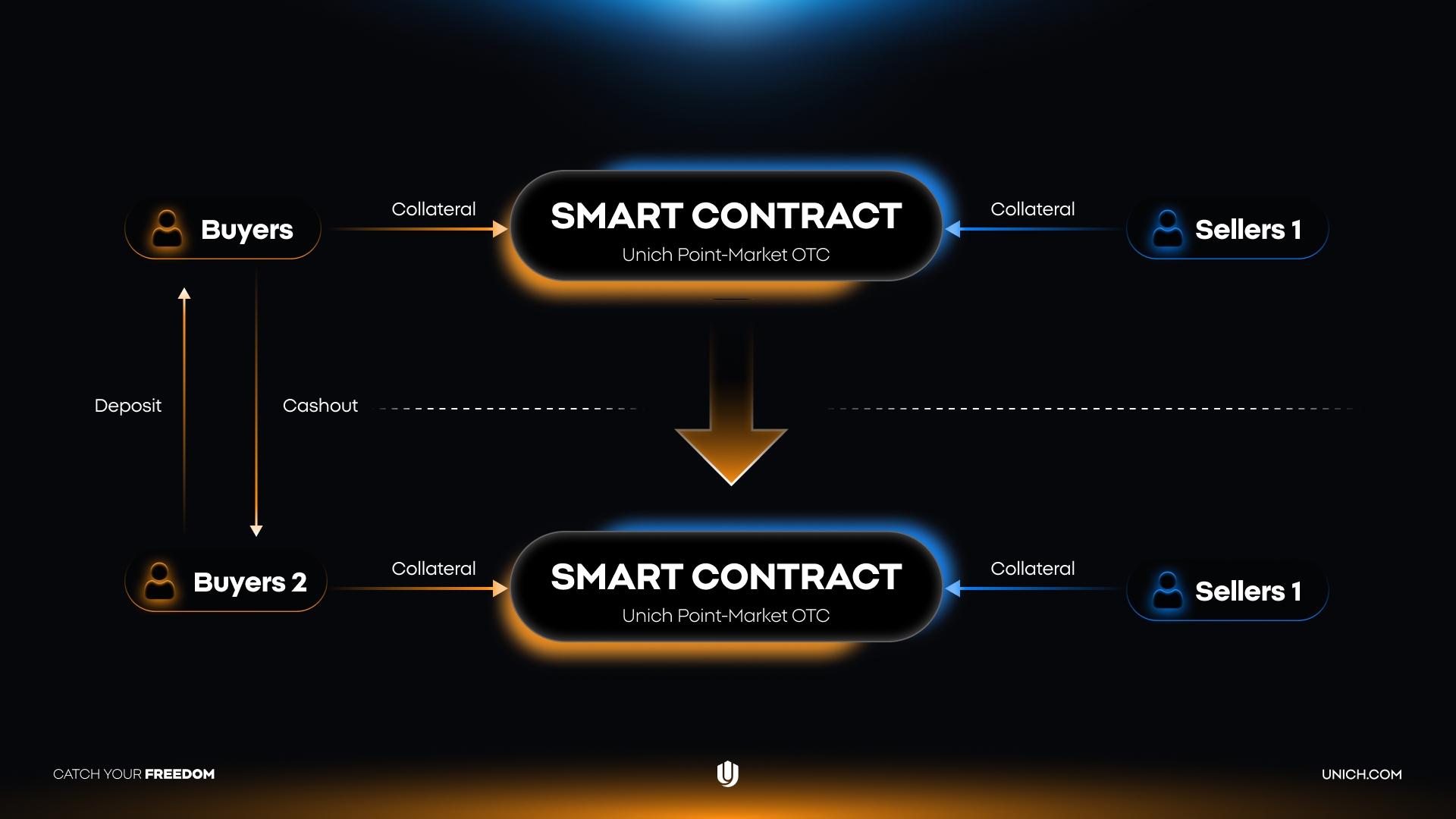 Unich Point-Market のルール:キャッシュアウト機能は、買い手と売り手がポジションを終了し、担保の一部または全額を引き出すことを可能にしますが、ポジションを早期に終了することで元の担保と等しいか、それ以下の額を受け取ることに同意する必要があります。