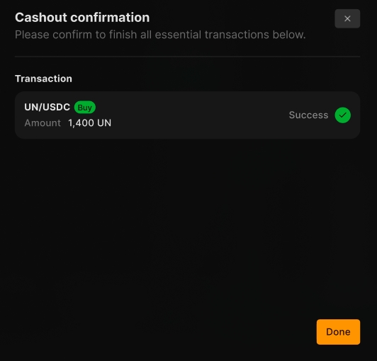 Arayüzün sol üst köşesinde, Unich şu anda UN ve USDC ile işlem çiftlerini desteklemektedir.